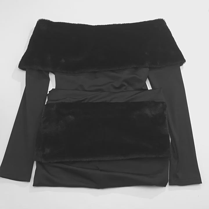 This stunning dress combines timeless elegance with a flattering, curve-hugging fit. The faux fur accents add a touch of luxury, while the premium stretch crepe fabric ensures comfort and style for any occasion. Perfect for turning heads and making unforgettable impressions