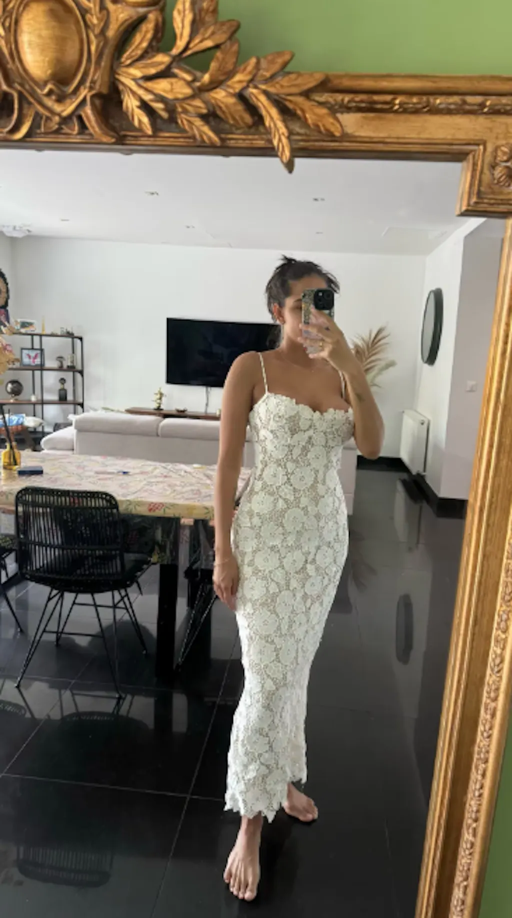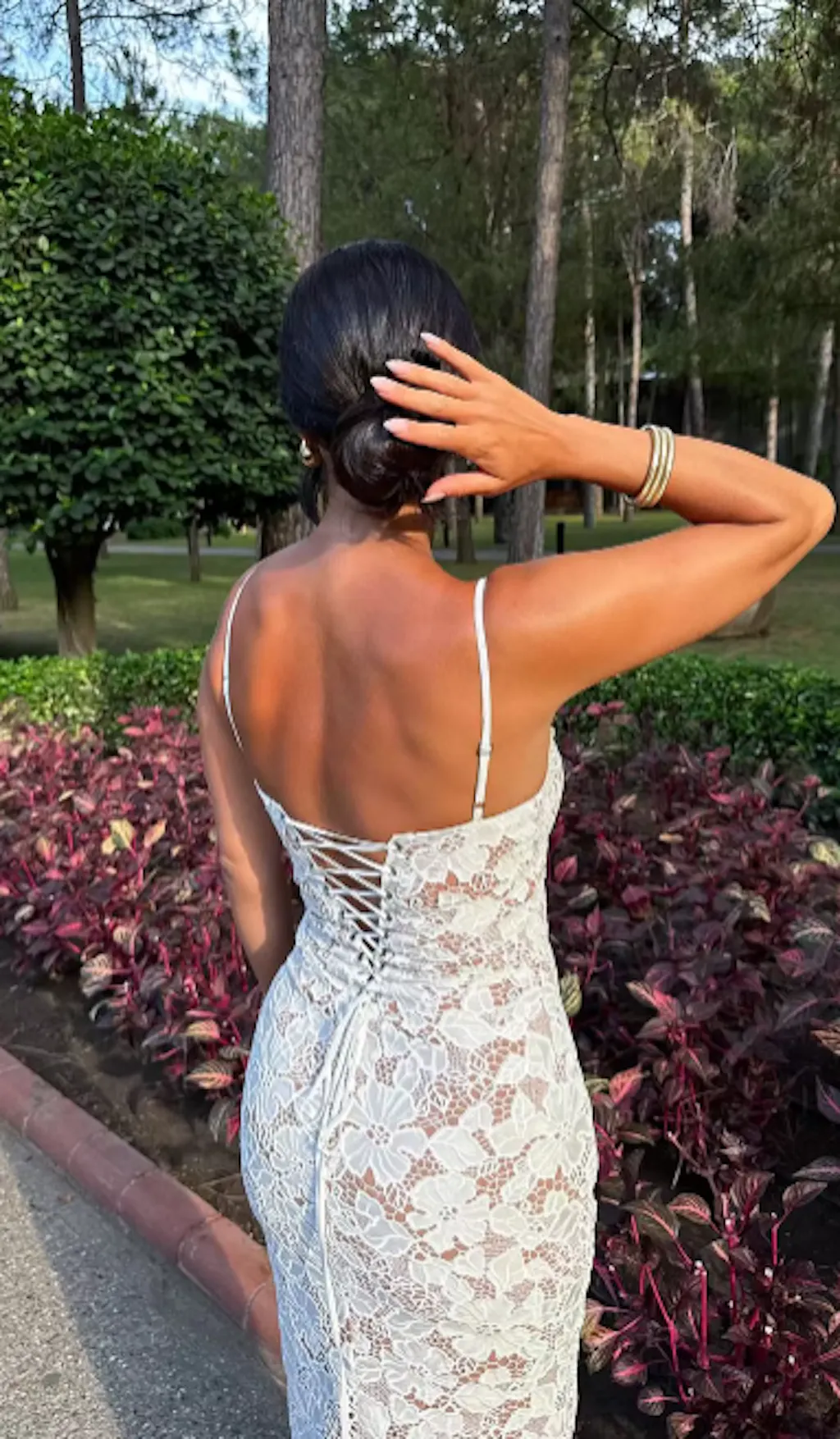 With romance in mind, our 'Tracy' maxi dress is beautifully designed with a delicate floral embroidery and lined in a luxurious cafe au lait hue for coverage and to ensure you can see the intricate details perfectly. It has supportive underwired cups and turns to reveal the gorgeous lace up back to cinch the fit in a truly feminine, vintage style.